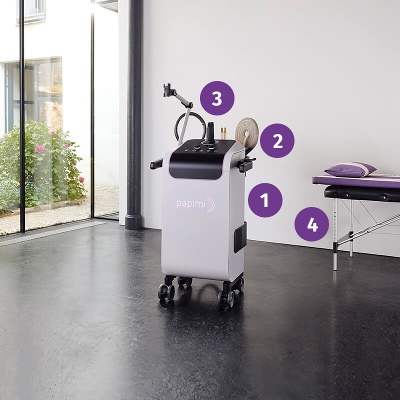 Same equipment as for “basic”. As a big plus, this set also offers our popular full-body applicator. This puts the patient in the perfect mood for the upcoming treatment with the hand applicators. Among other things, it serves to relax and stimulate the metabolism.