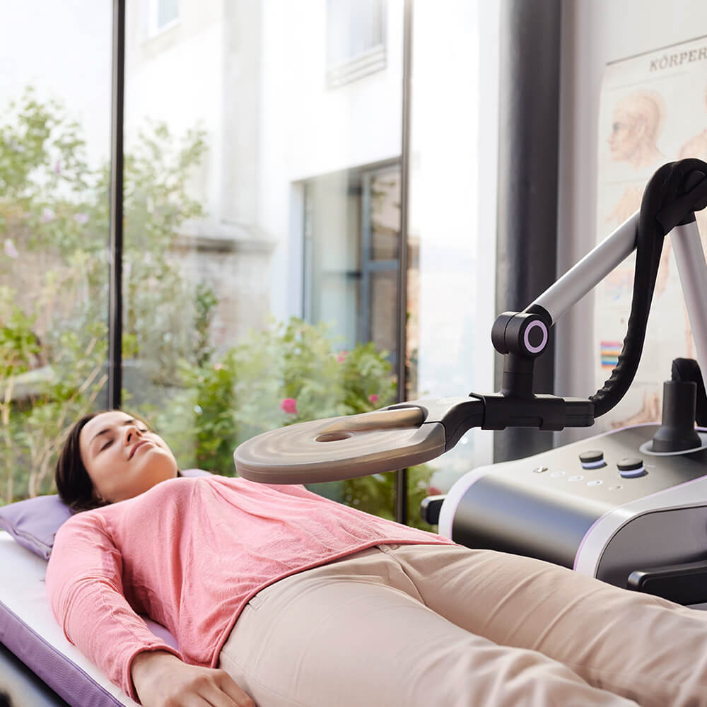 The tried and tested starter set with the practical, swivelling holding arm and our popular spiral applicator M, the all-rounder among the hand applicators. In addition to treatment, this is also particularly suitable for searching the body for problem areas, i.e. for diagnosis. In addition, you will receive our gentle ring applicator in this package. Its sophisticated, ring-shaped design is essential for treating the extremities (e.g.: shoulder, elbow, knee) and is also very well accepted by sensitive persons and children.